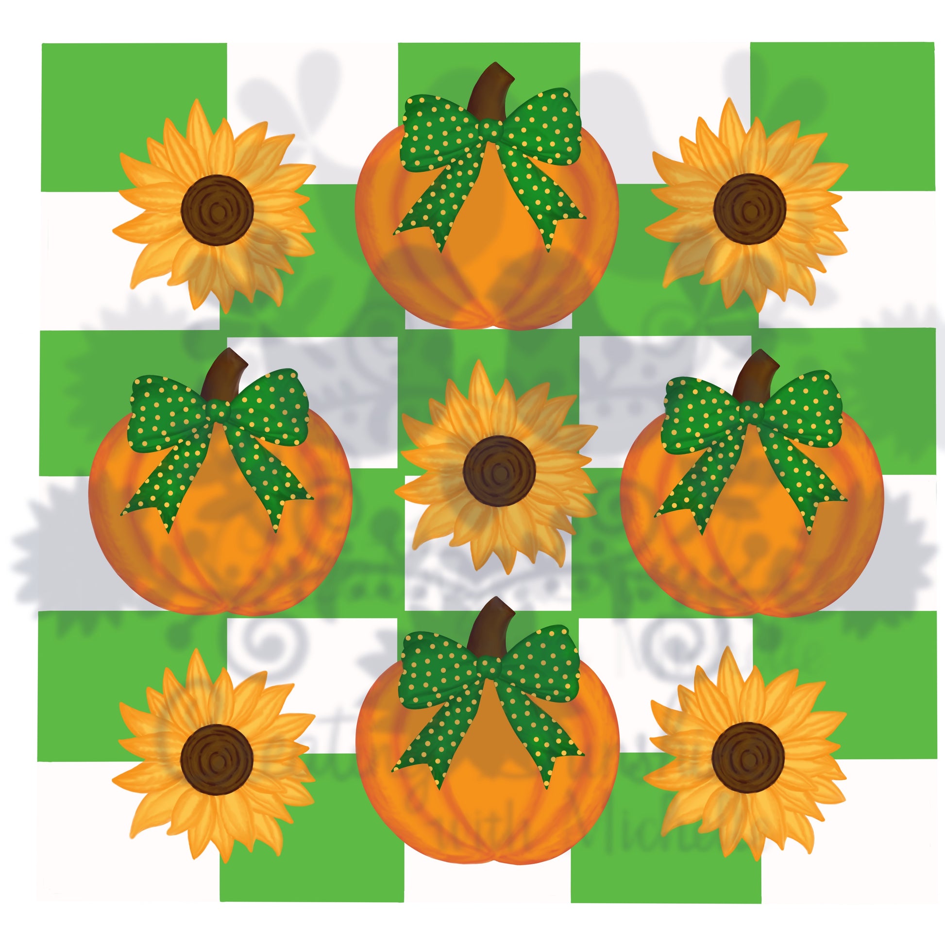 Pumpkins and Sunflowers with Light Green Checkerboard PNG Digital File