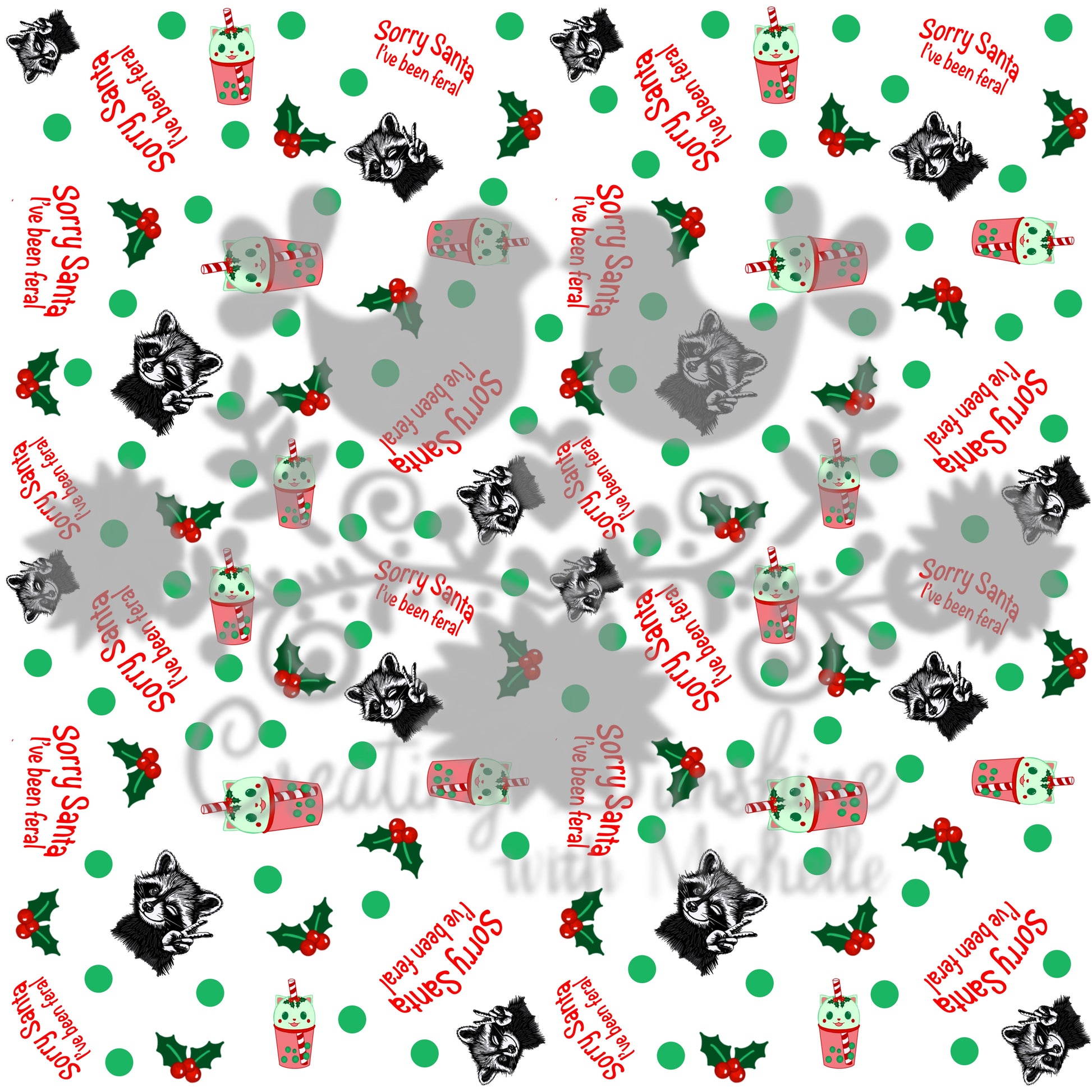 Raccoon Sorry Santa Feral Seamless Pattern PNG Digital File